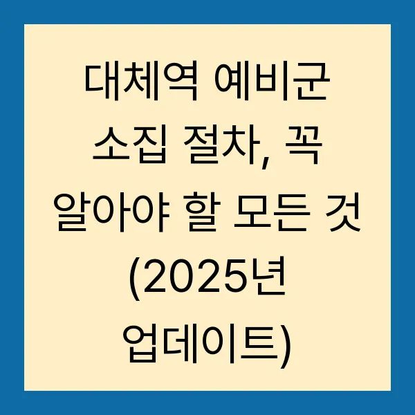 대체역 예비군 소집 절차, 꼭 알아야 할 모든 것 (2025년 업데이트)