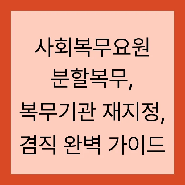 사회복무요원 분할복무, 복무기관 재지정, 겸직 완벽 가이드