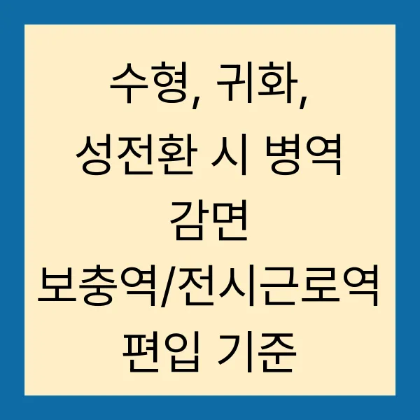 수형, 귀화, 성전환 시 병역 감면 보충역/전시근로역 편입 기준