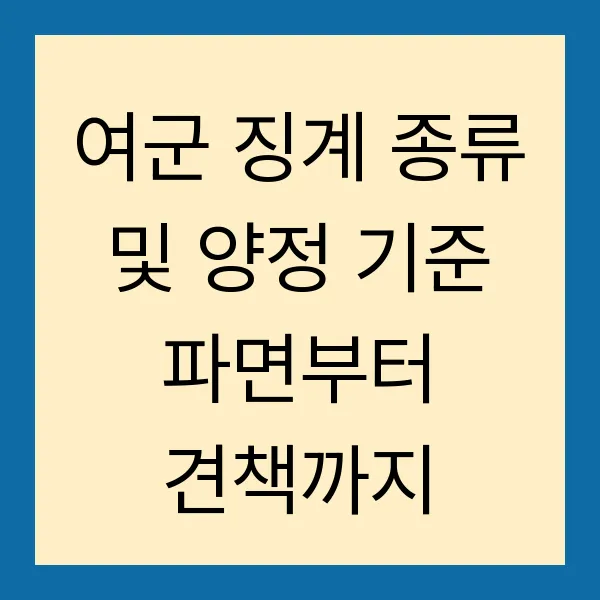 국가 안보의 최전선에서 헌신하는 여군! 그들의 숭고한 의무 이행에는 높은 수준의 윤리와 규율 이 요구됩니다. 혹시라도 이 기준에 미치지 못하는 행위가 발생한다면, 징계 절차가 진행될 수밖에 없죠. 본 포스팅에서는 여군에게 적용되는 징계 종류와 양정 기준을 파면부터 견책까지 낱낱이 파헤쳐 보겠습니다. 군 기강 확립과 복무 질서 유지, 더 나아가 국가 안보까지! 이 모든 것의 시작점이 바로 여기에 있습니다.