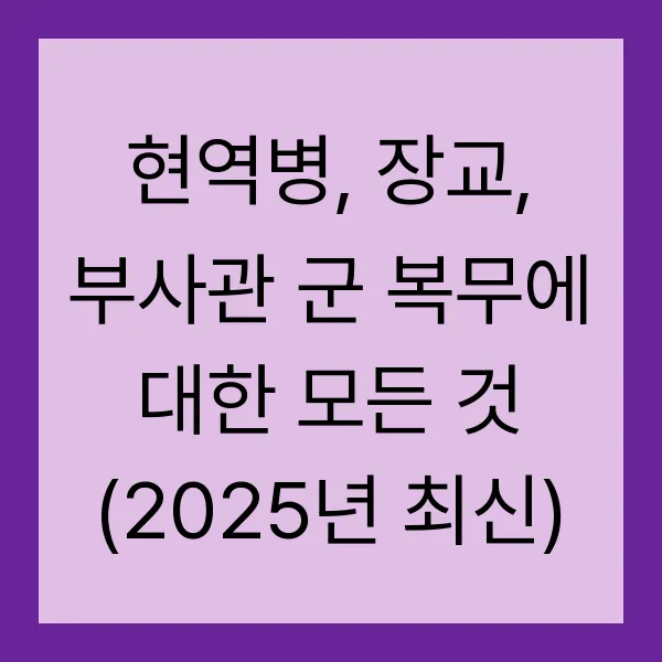 현역병, 장교, 부사관 군 복무에 대한 모든 것 (2025년 최신)