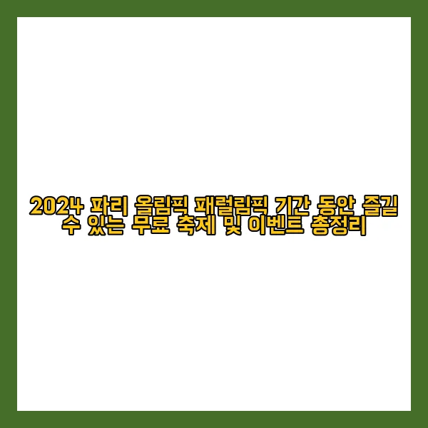 2024년 7월 26일부터 8월 11일까지의 올림픽 개최 기간과 8월 28일부터 9월 8일의 패럴림픽 개최 기간, 프랑스 전역에서는 다채로운 무료 축제와 이벤트가 펼쳐집니다.