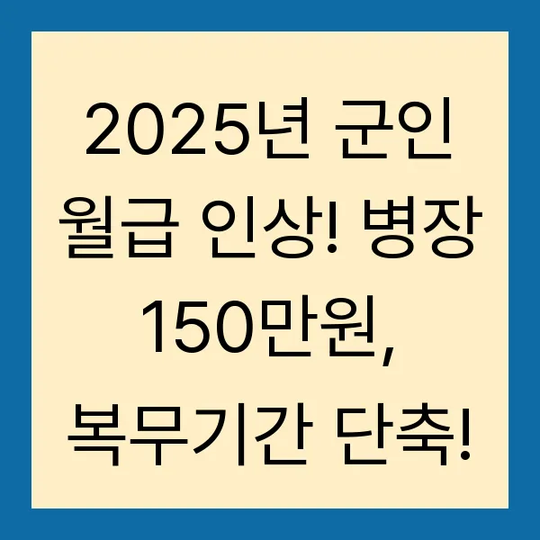 2025년 군인 월급 인상! 병장 150만원, 복무기간 단축!