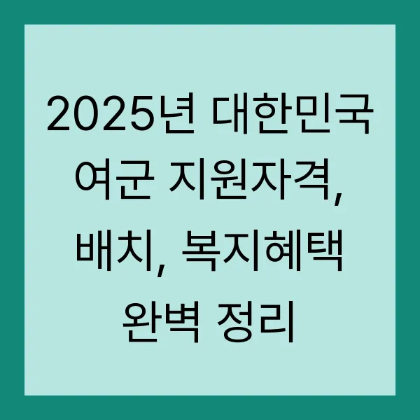 2025년 대한민국 여군 지원자격, 배치, 복지혜택 완벽 정리